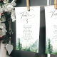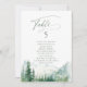 Forêt de pins vert luxuriant aquarelle et montagne brumeuse avec écriture moderne sage, cartes de table élégantes et romantiques pour un mariage rustique bohème et un mariage de destination en forêt de montagne au printemps et en été.