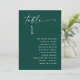 Invitation Tableau de sièges Mariage vert Turquoise profond.