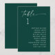 Guidez vos invités avec élégance grâce à cet élégant tableau de table de mariage, avec un riche arrière - plan vert turquoise et une typographie minimaliste. Le ton joyau audacieux, également décrit comme turquoise de forêt foncée, apporte profondeur et sophistication à votre décor mariage. Parfait pour les mariages modernes, boho, boisé ou en soirée. Cette carte turquoise ajoute une touche spectaculaire qui s'associe magnifiquement avec des accents d'or, d'ivoire ou de rougeur. Disponible en tant que carte imprimée et en tant que téléchargement numérique, ce qui facilite l'impression à la maison, par l'intermédiaire d'une imprimerie locale, ou de commander professionnellement imprimé.