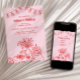 Une invitation à l'anniversaire d'un adulte rouge et rose, avec une illustration de gribouillis dessinée à la main, est parfaite pour des célébrations élégantes dans les restaurants, les lieux privés, la maison ou les réunions confortables. Le design est composé d'une ligne rouge fantaisie représentant une table avec du vin, des fleurs et des amuse-gueules sous un chapelet de lumières de fête sur un arrière - plan rose créant une ambiance chaleureuse et festive. La typographie serif propre s'associe avec un script ludique pour un look moderne mais classique, tandis que le jeu de couleurs bleu et blanc simple garde l'accent sur vos détails personnalisés. Idéale pour des anniversaires marquants ou des soirées élégantes, cette invitation allie sophistication décontractée et charme artistique. Disponible sous forme de cartes imprimées ou en téléchargement numérique instantané.