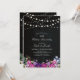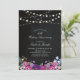 Célébrez votre jour spécial avec cette invitation personnalisée pour votre anniversaire de mariage ! Ce design présente de belles fleurs et des guirlandes lumineuses sur un fond rustique de tableau. Vous pouvez personnaliser tout le texte et ajouter votre photo au verso. Plus de designs disponibles dans ma boutique BaraBomDesign.