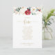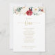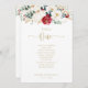 Ce tableau de table fleuri en or classique numéro 1 est parfait pour un mariage rustique. Le design se compose de fleurs blanches, bordeaux et dorées et de baies au feuillage vert disposées en bouquets élégants. La carte imprime recto verso (recto verso)