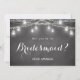 Carte d'invitation Black Bridesmaid avec lampes à cordes rustiques et bocal de mason sur un tableau noir/arrière - plan de tableau. Utilisez cette option de modèle personnalisée pour modifier le texte. | Utilisez l'option personnaliser pour modifier le style, la taille et la couleur du texte si nécessaire. Si vous n’avez pas besoin de texte, supprimez-le. Consultez notre collection de magasins ci-dessous pour plus de produits avec ce design.