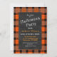 Lancez une fête d'Halloween avec un invitation en damier sur un plaid classique noir et orange. Modifiez facilement les détails dans la section personnalisée.