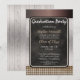 Les éléments rustiques abondent dans cette invitation de fête de remise des diplômes, avec une combinaison d'un fond en faux bois recouvert d'un dégradé de ton cuivre / bronze profond en haut et un fond à carreaux gingham en bas, et un tableau noir comme élément central. Ajoutez simplement les détails de votre célébration pour votre diplômé. Conception de Holiday Hearts Designs (droits réservés).