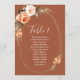 Ce Boho Automne Floral Numéro de table Les cartes de sièges sont parfaites pour un mariage de style rustique. Personnalisez avec vos numéros de table et vos noms d'invités. Le design est composé de roses d'aquarelle en terre cuite, rouille et rose vif avec cadre oval accent or sur un arrière - plan en terre cuite.