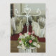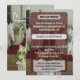 Un choix classique qui capture la belle ambiance de votre réception de mariage ! Cette invitation présente une photographie artistique d'un élégant centre de table - de luxuriantes roses blanches et ranunculus - mis en valeur au premier plan. L'arrière-plan flou met en valeur les tables de réception officielles décorées et préparées pour les invités. Ce design équilibre la beauté florale avec l'atmosphère luxueuse d'une grande salle de bal ou d'un lieu de réception officiel.