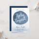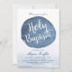 Faites une impression unique avec ces cartes d'invitation de baptême accrocheuses. Elles présentent une tache bleue de style aquarelle vers le centre. Sous cette tache bleue se trouve un espace pour vos détails uniques en blanc.