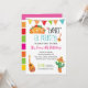 Notre invitation Taco bout a Party présente un mélange coloré de couleurs vives et audacieuses, ainsi que des graphiques amusants de fiesta mexicaine tels qu'un taco, un sombrero, un cactus et plus ! Parfait pour toute fête sur le thème des tacos ou de la fiesta mexicaine ! Également disponible dans notre boutique avec un fond tableau noir.