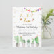 Cette invitation amusante présente des succulents aquarelle avec des accents de parties scintillant dorée et des drapeaux de fiesta couleur.