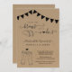 L'invitation comporte une illustration dessinée à la main d'un duo de tacos et d'un toast à la bière sur un fond kraft rustique merveilleux.