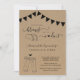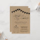 L'invitation présente une illustration de deux tacos et d'un toast à la bière dessinés à la main sur un fond en papier kraft rustique merveilleusement réalisé.
