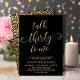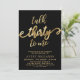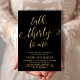 Chic Elegant Talk 30 To Me Script 30th Birthday Invitation in Black and Gold. Ce modèle d'invitation de fête d'anniversaire moderne présente un texte élégant "Talk Thirty To Me" en faux feuille d'or tourbillonnant script de calligraphie manuscrite (ou typographie) avec queues d'échasses, détails de fête en couleur or sur arrière - plan noir. Au verso faux feuille d'or tourbillonnante motif sur arrière - plan de couleur noire. Parfait pour fêter les trentièmes anniversaires marquants dans le style, cette invitation ajoute une touche de glamour à toute fête, aussi bien pour les hommes que pour les femmes.