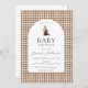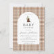 Tan Brown Check Plaid En vichy Garçon Bear Baby shower Invitation.