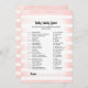 Profitez de jouer à ce jeu de baby shower Baby Candy sur arrière - plan doux, rose et blanc à rayures d'aquarelle. Mignons, bronzés, lapin lapin sur le dos avec des modèles créés pour vous.