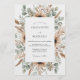This design features a sophisticated earthy palette of tan, beige, and sage green, creating a warm bohemian atmosphere. Delicate feathery pampas grass plumes pair beautifully with silver dollar eucalyptus leaves and muted cream anemones. The organic arrangement of dried botanicals evokes a desert-inspired aesthetic perfect for a natural event.