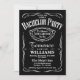 Cartons d'invitation de typographie noir et blanc tendance pour enterrement de vie de garçon.