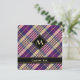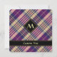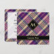 Design écossais violet, jaune doré et bleu. Motif sans couture. Texte et monogramme personnalisés.