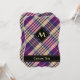 Design écossais violet, jaune doré et bleu. Motif sans couture. Texte et monogramme personnalisés.