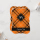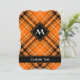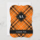 Échantillon de tartan moderne orange et noir halloween. Texte et monogramme personnalisés.