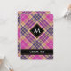 Design rose, jaune doré et écossais bleu. Motif sans couture. Texte et monogramme personnalisés.