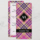 Design rose, jaune doré et écossais bleu. Motif sans couture. Texte et monogramme personnalisés.