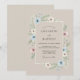 This elegant design features a neutral taupe background adorned with a border of delicate watercolor blossoms. Soft blue and blush pink anemones with their signature dark centers create a romantic and serene atmosphere. Delicate green leafy sprigs and eucalyptus accents surround the center, making it perfect for a sophisticated seasonal event.