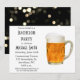 Une invitation de toast à la bière moderne que vous pouvez personnaliser et envoyer pour un enterrement de vie de garçon ! Un motif bokeh noir décore le dos de la carte.