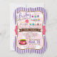 Cute, coloré cupcake tree et thé tasse baby shower invitation sur jaune clair et blanc rayures rétro motif. Caractéristiques, rose, jaune, bleu, vert, violet, brun, blanc et orange cupcakes avec tasse à thé rose, vert et marron, tasse à thé, tasse à café, et fleur rose et jaune. Idéal pour les baby showers à thème pour les fêtes de thé ! Un baby shower neutre peut être personnalisé pour une fille ou un garçon ! invitation vintage en forme de support.