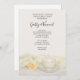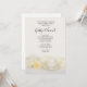 Invités Invitations à un événement pré-mariage en l'honneur de la mariée et de la salle de spectacle pour être avec l'élégante Tea Cup avec White Rose Flower Engagement Party Invitation. Ce joli invitation de soirée à fleurs sur mesure présente une photo florale d'une tasse de thé et d'une soucoupe aux bords dorés avec une fleur de rose blanche et du satin blanc. Parfait pour le couple qui planifie une fête du thé ou une réunion de thé.