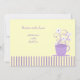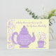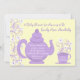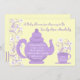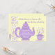 Invitation de théière violette et jaune pour le baby shower. Customisez avec votre propre texte avec plus de place sur le dos pour plus de texte.