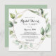 Cette invitation de thé party de mariage géométrique élégant en or est parfaite pour une douche de mariage simple. Le design présente des feuilles de eucalyptus vert botanique peintes à la main, ornant un cadre géométrique en or.