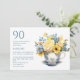 Jolie petite tasse avec fleurs bleues et jaunes printemps ou été 90ème anniversaire invitation à la fête. Cette invitation peut être achetée imprimée ou comme une invitation numérique à partager avec sa famille et ses amis sur les médias sociaux ou par e-mail. Contactez-moi pour obtenir de l'aide sur vos personnalisations ou pour demander des produits Zazzle correspondants ou coordonnés supplémentaires pour votre groupe.