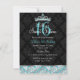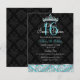 Invitation d'anniversaire Teal & Black Sweet 16. Jolies tiara diamantée argent et teal et design damassé argent scintillant. Veuillez noter : Toutes les images plates, elles n'ont pas de vrais bijoux !