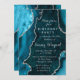 Invitation Teal Blue and Silver Agate Marble Birthday Party