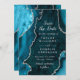 Invitation Teal Blue and Silver Agate Marble Save The Date