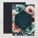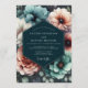 Experience a dramatic and romantic atmosphere with this moody floral design. The artwork features a stunning bouquet of painterly anemones and poppies in lush shades of teal, blush pink, and soft coral. Set against a deep, dark background, the blossoms create a beautiful contrast, evoking a sense of timeless elegance and artistic still life beauty for your special union.