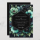Experience a dramatic and elegant union with this stunning botanical design. Lush, painterly anemones and florals bloom in rich shades of teal, emerald, and mint against a dark, moody background. The watercolor effect creates a sense of deep, nocturnal romance perfect for a sophisticated affair. This artistic arrangement offers a beautiful and striking aesthetic for your special day.