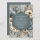 Delicate teal blossoms and muted floral accents create a dreamy, atmospheric backdrop. This design evokes a sophisticated yet lighthearted mood, perfect for a romantic union. The palette features soft blues, creams, and subtle earthy tones.