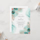 This design features a serene blend of teal watercolor washes and shimmering copper foliage. Ethereal blooms resembling poppies are nestled amongst delicate metallic leaves, creating a dreamy coastal aesthetic. The palette of aqua and bronze evokes a sense of fluid elegance and artistic sophistication. It is ideal for a seaside or waterfront event looking for a modern yet romantic touch.