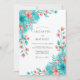 Invitation Teal Coral Botanical Romance Wedding