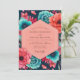 A vibrant display of teal and coral blossoms unfolds across a dark, moody backdrop. This rich botanical design evokes a sense of romantic opulence. The abundant floral imagery creates a captivating and dramatic aesthetic for your special occasion.