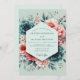 Embrace a modern romance with this artistic floral design, featuring a striking palette of deep teal, vibrant coral, and soft peach. Lush, painterly peonies and delicate smaller blossoms are arranged beautifully against a pale mint background. The watercolor aesthetic creates a sophisticated and dreamy atmosphere for your special day.