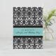 Custom 30th Birthday party in elegant turquoise blue, black and white classic floral damask. Add your name and party details for a unique and stylish 30th birthday invitation.