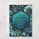 Embrace a dramatic and elegant aesthetic with this stunning botanical design. A rich palette of deep sapphire blue, vibrant teal, and lush green sets a moody tone. Artfully arranged succulents and foliage, highlighted by delicate golden-hued accents, create a sophisticated atmosphere for your special day.