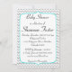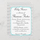 Une invitation personnalisable de baby shower avec une frontière turquoise et une conception grise de Chevron.