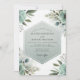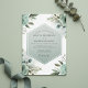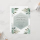 A dreamy watercolor design featuring soft teal and sage floral elements, evoking a romantic and ethereal mood. Delicate blossoms and foliage are artfully arranged to create a serene and elegant aesthetic. This design is perfect for a sophisticated celebration.