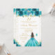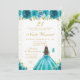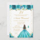 Invitation Teal Floral Brunette Hair Princess Birthday Party