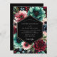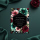 Rich jewel-toned blooms in deep teal, burgundy, and blush create an opulent, romantic atmosphere. This design evokes a sense of luxury with its dramatic floral arrangement, perfect for an elegant affair.