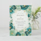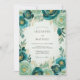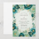 This sophisticated design features lush watercolor roses in shades of teal, emerald, and mint. Shimmering gold leaf accents provide an elegant touch against the soft, painterly background. Perfect for a formal event, the botanical arrangement conveys a sense of timeless romance and refined luxury. The deep jewel tones create a moody yet vibrant aesthetic.